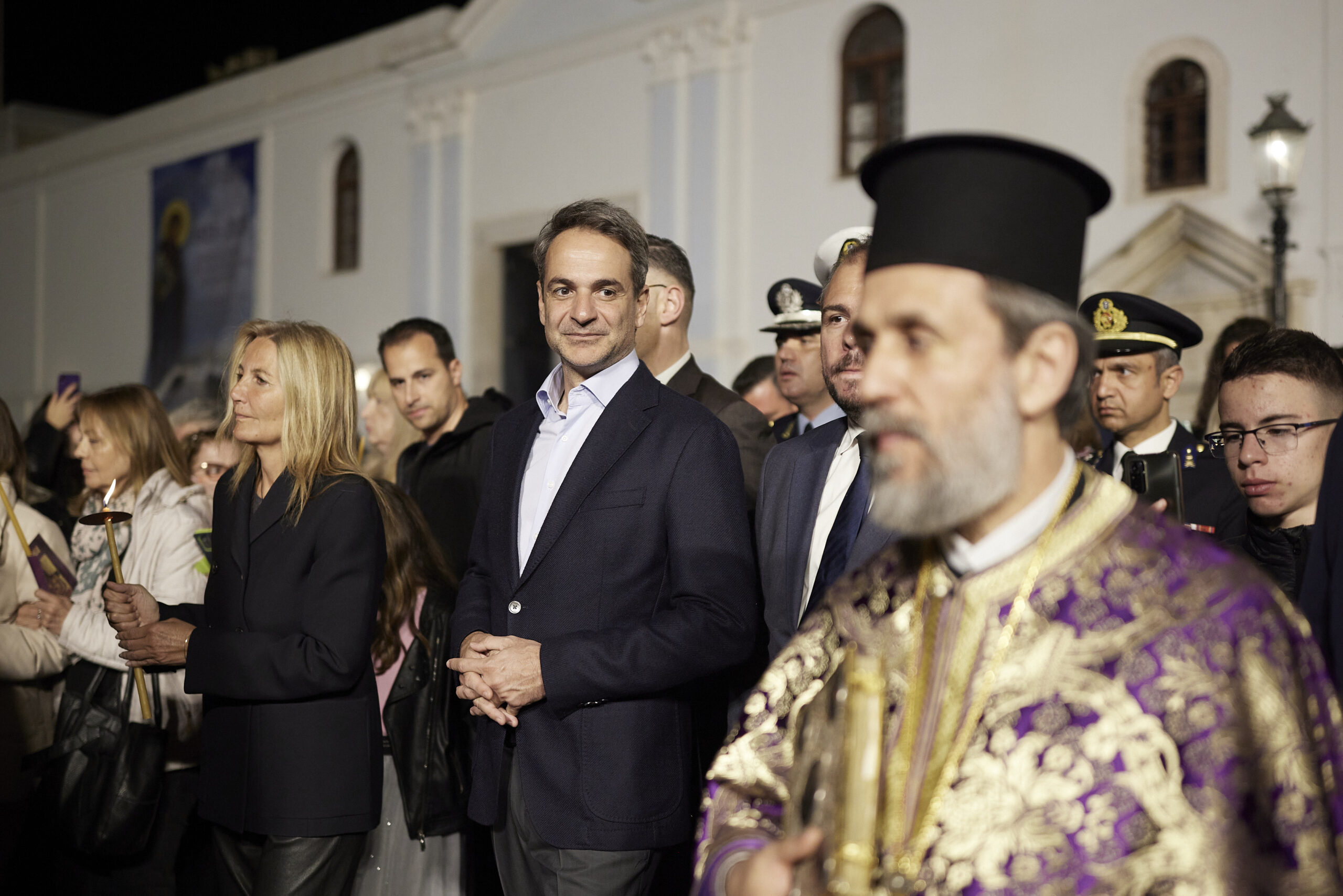 Ο πρωθυπουργός παρακολούθησε την πρώτη Ανάσταση που γίνεται το πρωί του Μεγάλου Σαββάτου στην Τήνο.